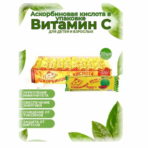 КУПИТЬ Аскорбиновая кислота с сахаром "Арбуз" Аскопром, 25 мг №10, 20 шт в наборе за 405 руб