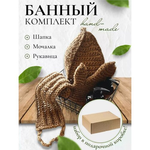Купить Банный набор для парения "АромаПар" 3 предмета из джута (шапка+мочалка+руковица) за 1200 руб
