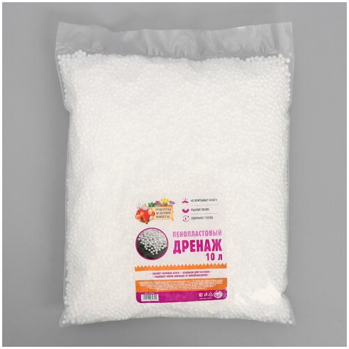 Артикул: 0756-625. Дренаж из пенопласта - это отличная профилактика гнили. Вес: 56 гр, Размер упаковки: 30 x 10 x 34 см, Температурное ограничение: Нет, Вес, кг/Объём, л: 10, Область применения: Дренаж, Фракция, мм: 4-6. Посадить растение. При работе соблюдать общие правила безопасности и гигиены. Растениям такой дренаж очень нравится еще и потому, что пенопласт держит тепло. Состав: Пенопласт. Меры предосторожности: Хранить отдельно от пищевых продуктов и медикаментов, в местах, недоступных для детей и домашних животных. В качестве разрыхлителя: Смешать с грунтом в соотношении 1:4 (На 1 часть дренажа - 4 части почвы или грунта). Удаляет излишки влаги; Безопасен для растений; Защищает корни саженцев от переохлаждения; Способы использования: В качестве дренажа: Выложить на дно горшка дренаж слоем 1-2 см Насыпать грунт. Класс опасности: IV (Малоопасное вещество). В таком субстрате не будет и тли. Срок годности: Не ограничен.