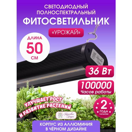 Купить Фитолампа для растений и рассады "Урожай", полного спектра, "Красивая грядка", длина 50 см, цвет черный за 4950 руб