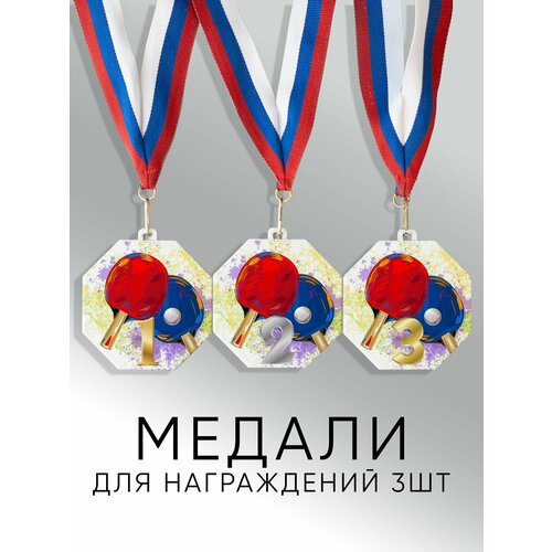 характеристики Комплект металлических медалей "1, 2, 3 место" с лентами триколор, медаль сувенирная спортивная подарочная Настольный Теннис