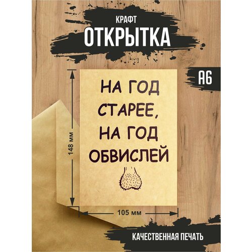 КУПИТЬ Крафт открытка "На год старее" с крафт конвертом за 140 руб