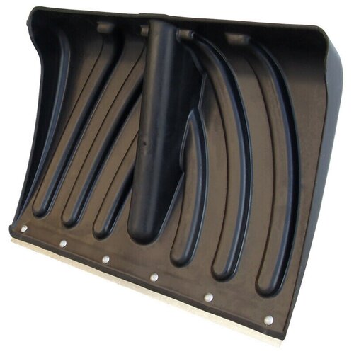 Удобная и прочная пластиковая снеговая лопата универсального размера. Характеристики: Материал: прочный, морозоустойчивый композиционный пластик Ширина ковша: 465 мм Высота ковша: 340 мм Накладка: оцинкованная сталь Ребра жесткости: 7 шт Черенок: нет Рекомендуемый диаметр черенка: 32 мм Вес: 0,9 кг Цвет: черный Особенности: по всему борту ковша расположены ребра жесткости – очень прочная конструкция угол наклона ковша спроектирован с расчётом максимального удобства при работе.