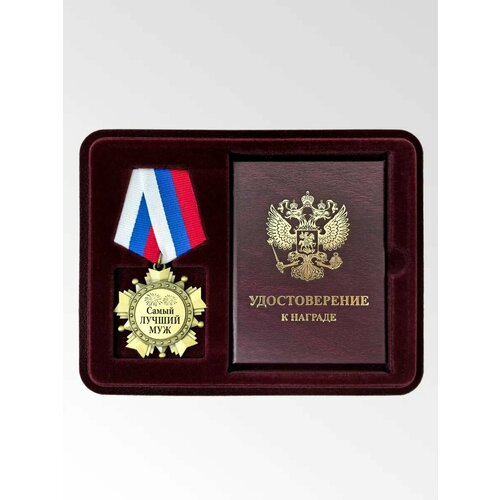 Медаль орден с удостоверением Самый лучший муж. Диаметр медали: 50 мм. Медаль орден из качественного металла с лазерной гравировкой в подарочном футляре с удостоверением. Этот подарочный набор будет отличным подарком на любой праздник, юбилей, новый год, день рождения, годовщина и т. Наградное удостоверение в комплекте, которое заполняется лично любым текстом или поздравлением. Высота медали с колодкой: 10,5 см. Колодка триколор с креплением на булавке. д.