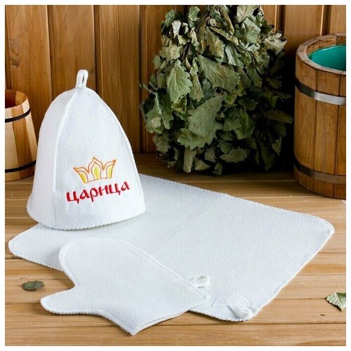 Купить Набор для бани "Царица" шапка, коврик, рукавица за 850 руб