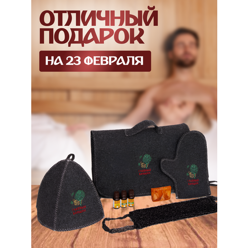 Представляем вам мужской банный набор аксессуаров, состоящий из 8 оригинальных предметов, который станет отличным выбором для любого мужчины, который любит расслабиться и приятно провести время в бане или сауне. Это отличный способ показать заботу и внимание. Этот подарочный набор идеально подходит для бани и сауны и будет незаменим для любого ценителя релаксации и уюта. Этот набор станет отличным подарком для папы, брата, дяди или даже коллеги по работе, который ценит время в бане. Эта банная романтика не только приятна, но и практична. Кроме того, мы включили банное мыло ручной наборы, которое с легкостью очистит ваше тело и подарит незабываемые ощущения во время банного процесса. Удивите своего мужчину или близкого человека этим прикольным и полезным банным набором. Подарите ему не просто стильные штучки, а целый комплект банного текстиля, который сделает его время в бане незабываемым. Все для бани и сауны произведено в России. Для хранения всех аксессуаров предусмотрен удобный портфель, который не только удобен для принятия банных процедур, но и является подарочной упаковкой. Закажите мужской банный набор аксессуаров и подарите радость. В нашем оригинальном банном наборе вы найдете все необходимые принадлежности для полноценного отдыха: стильную банную шапку с вышивкой Ушел в баню, практичную варежку для подачи горячих камней, джутовую мочалку, а также набор из трех эфирных масел для ароматизации сауны. Он станет отличным дополнением для любого мужского застолья, похода в баню или сауну, и просто для расслабляющего вечера. Он также идеально подходит для друга или начальника, которому вы хотите сделать приятный подарок на 23 февраля, 14 февраля или в день рождения. Необычные и оригинальные аксессуары для бани вызовут улыбку и подарят хорошее настроение. Шерстяной войлок, из которого изготовлены некоторые предметы, отлично сохраняет тепло и поддерживает нужный температурный режим.