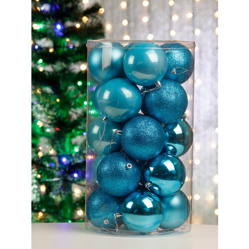 Купить Набор елочных украшений "Шары" (бирюзовый/матовый/глянец/принт "искра", 10 см), 20 шт 00075-1/9 за 3660 руб