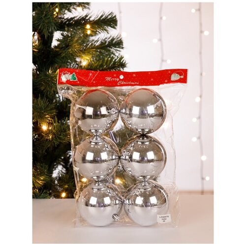 Купить Набор елочных украшений "Шары" (серебристый/глянец, 10 см, в пакете), 6 шт 00070 за 1040 руб