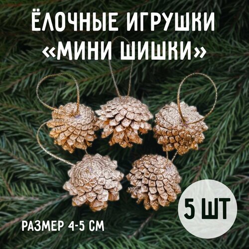 Купить Набор ёлочных игрушек украшений "Мини Золотые Шишки" для нового года 5шт за 730 руб
