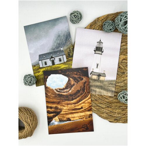Купить Набор открыток с пейзажами "Маяк", "Грот", "Дом в лесу" 3 шт. 14,8 * 10,5 см за 350 руб