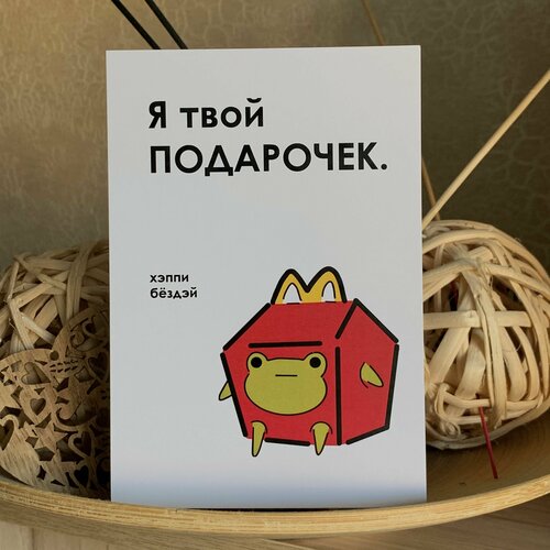 Купить Открытка авторская милые лягушки с днем рождения "Я твой подарочек" за 229 руб