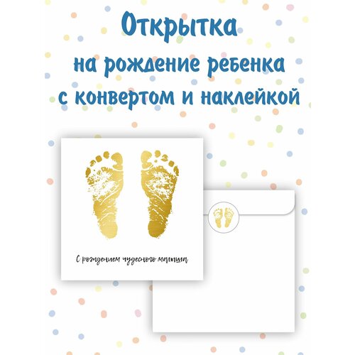 Открытка на рождение ребенка – это милый подарок для молодых родителей. Открытка для новорожденного может быть использована, как дополнение к основному подарку на выписку. Рождение малыша - это одно из самых радостных и волнительных событий в жизни каждой семьи. На обратной стороне открытки вы также можете дописать свои пожелания, а в конверт можно положить денежную купюру или подарочный сертификат. Дизайн выполнен в нежных, пастельных тонах. Открытка идеально подойдёт в подарочный набор от: бабушки, дедушки, друзей, подруг, коллег, сестры и брата. Открытка с появлением малыша изготовлена из плотного материала с яркой качественной печатью. В комплекте: двусторонняя открытка 115х115 мм материал мелованная бумага плотностью 300 гр/м2 с белым конвертом 123х126 мм и круглой наклейкой д 25мм. У нас большой выбор маленьких и стандартных открыток на рождение малыша, малышки, с рождением сыночки и дочки, а так же на крестины ребенка.