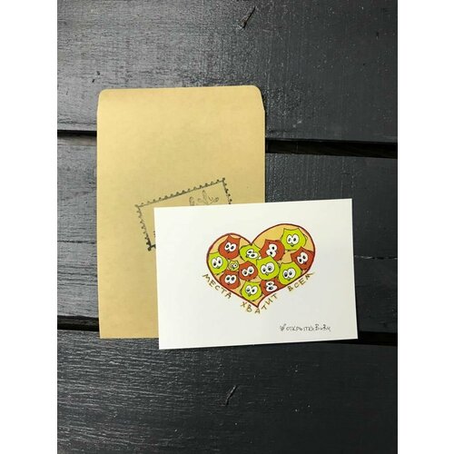 Авторская открытка в подарочной упаковке. Они дарят настоящие эмоции и не оставляют никого равнодушным. ОткрыткиВиВи – это открытки об истинных желаниях, ценностях и смыслах Жизни. Открытка и крафт-конверт бережно упакованы в прозрачный бопп-пакет и в подарочный BOX. размер подарочного BOX 14х4х10 см. ОткрыткиВиВи путешествуют по миру с 2012 года, их дарят друг другу, без лишних слов говоря о главном, и тепло улыбаются, когда получают. Подарить открытку - старая добрая традиция, замечательная идея для теплого подарка друзьям и близким, возможность поддержать и приободрить человека, сделать небольшой знак внимания или рассказать о своих чувствах тому, кто важен и дорог. размер крафт-конверта 9х13 см. размер открытки 7,5х10,5 см. Открытки знают и хранят в семейных архивах более чем в 30 странах мира.