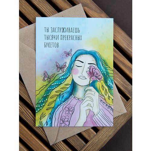 Купить Открытка "Ты заслуживаешь тысячи прекрасных букетов" 10х15 см с крафтовым конвертом за 180 руб