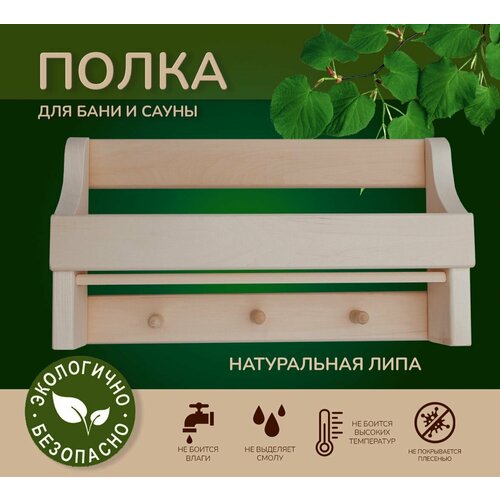 Купить Полка вешалка настенная с крючками деревянная для бани и сауны "Универсальная", липа 50*27*9 за 801 руб