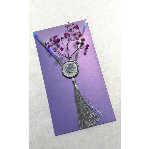 Конверт для денежного подарка на свадьбу, юбилей, день рождения. Стабилизированные цветы почти не осыпаются, гибкие, сохраняются в таком виде до 5 лет Чтобы ваш подарок стал самым оригинальным и незабываемым, оформите его неповторимой упаковкой. Конверт оформлен стабилизированной гипсофилой. Конверт украшен шелковой кисточкой, восковой печатью, тиснением фольгой. Закажите подарочный конверт заранее. Размер конверта 10*18 см. Ваш денежный подарок в красивом, эксклюзивном конверте точно запомнится и произведет впечатление. Конверт можно использовать для поздравительной открытки, денежного подарка, сертификата, приглашения на свадьбу. Закрывается на магнит. Сделан из плотной дизайнерской бумаги Авторский дизайн. Он вам определенно пригодится.