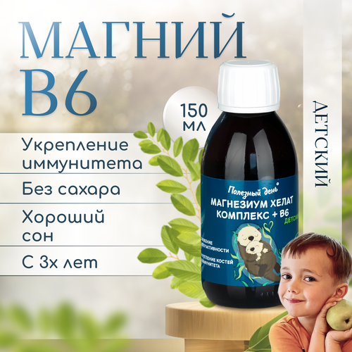 Магний витамин B6 в формате сиропа без сахара (магнезиум хелат) - это отличное решение для здоровья вашего ребенка. Комплекс витаминов и минералов, включая магний, играет важную роль в поддержании оптимального здоровья и развития детей. Сочетание магния и витамина В6 делает этот сироп незаменимым дополнением к ежедневному рациону малыша. Во-вторых, жидкая форма сиропа обеспечивает легкое и быстрое усвоение организмом ребенка. Магний является неотъемлемым элементом для поддержания здоровья костей, нервной системы и сердца. Во-первых, это удобное и простое средство приема необходимых витаминов и минералов для детей. Такое сочетание позволяет вашему ребенку получить все необходимое для полноценного роста и развития. Магний хелат B6 имеет улучшенную формулу, обеспечивающую максимальное усвоение минерала в организме малыша. Полезный день известна своими высококачественными продуктами, созданными для здорового образа жизни. Ведь малыши не всегда могут принимать таблетки или капсулы, поэтому магний б6 детский сироп - это идеальное решение. Детский магний сироп безопасен и эффективен, что делает его идеальным выбором для заботливых родителей. Магний детский сироп обладает рядом преимуществ, которые вы не захотите упустить. Магний детский сироп от компании Полезный день - надежная гарантия качества и безопасности. Так что вы можете быть уверены, что все нужные питательные вещества достигнут своей цели. Магний в6 детский сироп содержит не только магний, но и витамин В6, что делает его очень полезным для здоровья малыша. Витамин В6, в свою очередь, играет важную роль в обмене веществ и превращении пищи в энергию. Доверьтесь опыту и качеству, выбирайте Магний В6 детский сироп от Полезный день. Ваши дети заслуживают только лучшего, и этот сироп станет незаменимым помощником в их здоровье и развитии. Магний витамин B6, биологически активная добавка к пище в формате сиропа для детей с 3-х лет Magnesium Chelate complex B6 baby. Без сахара. Без красителей. Без ароматизаторов. Без глицерина. После вскрытия упаковки хранить в холодильнике не более 30 суток. Рекомендации по применению: Дети от 3 до 7 лет (1 чайная ложка или 5 мл) - магний (29,8 мг), В6 (1,2 мг). Дети от 7 до 18 лет (2 чайные ложки или 10 мл) - магний (59,6 мг), В6 (2,4 мг). Продолжительность приема: 1 месяц. При необходимости прием можно повторить. Противопоказания: детский возраст до 3 лет, индивидуальная непереносимость компонентов, беременность, кормление грудью.