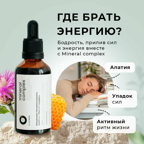 Мультивитаминный комплекс для здоровья, энергии и красоты Mineral complex – высокоэффективный минеральный комплекс разработанный для укрепления иммунитета, повышения жизненных сил и улучшения общего состояния организма. Он противостоит вирусам и бактериям, укрепляет стенки сосудов. Антиоксидантная защита В состав комплекса входит мощный антиоксидант, который защищает клетки от повреждений, вызванных свободными радикалами. Эти экстракты обладают адаптогенными свойствами, способствуют повышению выносливости, помогают нормализации пищеварения и сна. Даёт возможность лучше засыпать и крепче спать,помогает справиться с последствиями несбалансированного питания. ), необходимых для оптимального функционирования организма. Поддержка сердечно-сосудистой системы Комплекс положительно влияет на укрепление сердечно-сосудистой системы,а так же на улучшение кровообращения и нормализацию кровяного давления. Красота изнутри Витамины и минералы, содержащиеся в компонентах комплекса, необходимы для поддержания здоровья кожи, волос и ногтей. Помогает при смене часовых поясов и акклиматизации. Натуральные растительные экстракты В натуральных компонентах комплекса содержаться: экстракт ягеля, левзеи, прополиса, гуминовых кислот, цеолита и дигидрокверцетина. Безопасность и эффективность Mineral complex от О - Комплекс действует мягко и безопасно. Широкий спектр витаминов и минералов Компоненты комплекса содержат широкий спектр витаминов (A, E, C, группы B) и минералов (магний, калий, кальций, железо и др. Он способствует снижению уровня холестерина и профилактике атеросклероза. Энергия и тонус Mineral complex благотворно влияет на физическую и умственную работоспособность. Способствует улучшению памяти, нормализации эмоционального фона и помогает справиться с последствиями стресса, апатии и депрессии. Способствует лёгкому подъёму по утрам. Он не вызывает побочных эффектов и подходит для длительного применения. Эффективность комплекса подтверждена многочисленными отзывами. Для кого рекомендован Mineral complex рекомендован для женщин и мужчин,он препятствует появлению синдрома хронической усталости. Он особенно полезен для тех, кто ведет активный образ жизни, испытывает постоянные физические и эмоциональные нагрузки, а также для тех, кто заботится о своем здоровье и внешнем виде.