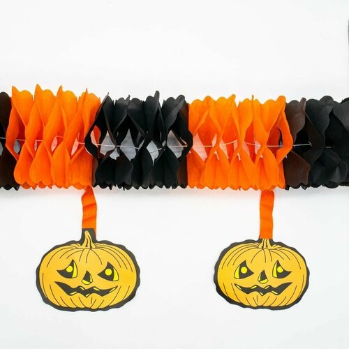 Купить Растяжка "Тыквы" бумажная оранжево-черная, украшение на хэллоуин за 319 руб