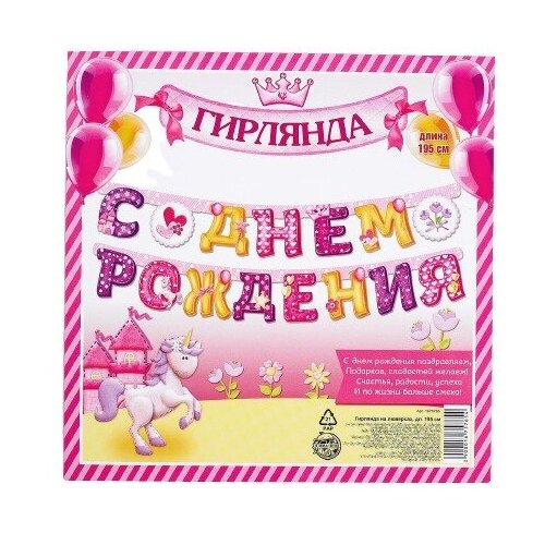 Гирлянда «С днём рождения» Гирлянда «С Днем Рождения», для праздничного оформления помещений создаст неповторимое настроение торжества. Буквы скреплены с помощью люверсов, что позволяет свободно трансформировать гирлянду. Оригинальная форма, яркость печати и эксклюзивный дизайн помогут сделать праздник незабываемым. -Вес: 62 г. 0,2 см -Материал: Картон -Набор: Нет -Цвет: Разноцветный, Розовый -Для кого: Для девочки -Плотность, г/м. Аксессуар легко крепится на стену или дверной проём с помощью клейкой ленты или кнопок. На лицевой стороне напечатана красочная надпись. 13,9 см. -Фасовка: 1 шт -Тип индивидуальной упаковки: Подложка, пакет -Длина упаковки: 19 -Высота упаковки: 0.5 -Ширина упаковки: 19 -Объем упаковки: 0.181 -Объем продукта: 0.219 -Объем бокса: 67.24 -Ширина: 13.9 -Высота: 0.2 -Габариты товара: 19,5 см. Изделие поставляется в пакете с яркой дизайнерской подложкой. : 250 -Длина, см: 195 -Тематика: Праздник -Вид упаковки: Пакет, Подложка -Тематика праздника: День рождения -Адресат: Именинник/Именинница -Вид: Гирлянды, растяжки.