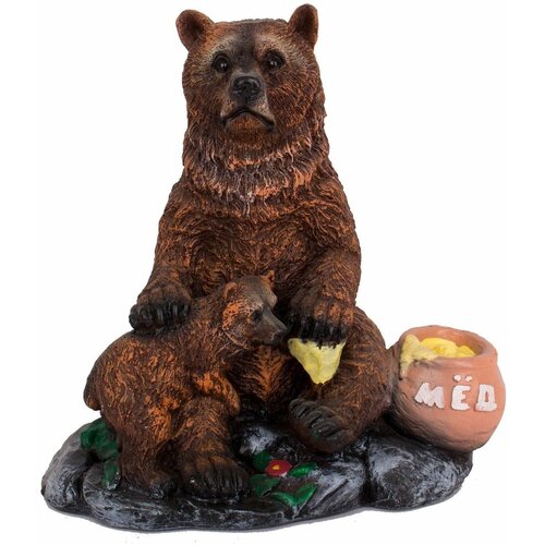 характеристики Садовая фигура "Медведь с медвежонком у бочки меда", высота 30 см. Полистоун.