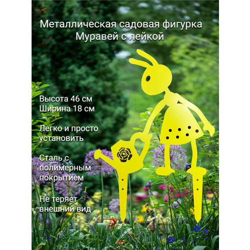 Купить Садовые фигуры "Муравьишка с лейкой", цвет желтый, 46 см, сталь, фигурки для сада за 499 руб