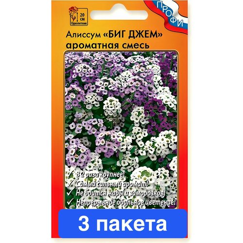 характеристики Семена цветов Русский Огород "Алиссум Биг Джем ароматная", смесь, 30 шт. 3 пакета