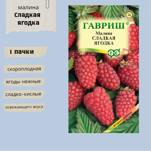В заказе - 2 упаковки. Малина зацветает сразу после весенних заморозков. Многолетний скороплодный кустарник высотой 1,5-2,0 м из семейства Розоцветные, с однолетними и двулетними надземными побегами, многолетним корневищем и придаточными корнями. Светолюбивое растение, предпочитает плодородные, защищенные от ветра, умеренно влажные почвы (не выносит заболоченных участков), с уровнем залегания грунтовых вод не выше 1,5 м от поверхности почвы. Весной семена вместе с песком, высевают на грядки или в ящики на глубину 0,5 см. Плод — сборная костянка (чаще называют ягодой), ярко-красного цвета, округлая, массой 2,0-5,5 г. Всходы появляются неравномерно. На зиму растения можно укрыть или проследить, чтобы на месте посадок был достаточный снеговой покров. Молодые растения подкармливают 5-6 раз за сезон комплексным удобрением. Ягоды нежные, сладко-кислые, освежающего вкуса. Плодоношение наступает на второй год. Плодоносит через месяц с начала цветения в течение 30 дней. Сеянцы пикируют в стадии 2-х настоящих листочков на постоянное место. Семена перед посевом стратифицируют во влажном песке, при температуре 2. С, в течение 3-4 месяцев, время от времени увлажняя субстрат. В качестве субстрата используют смесь торфа и хорошо удобренной садовой земли (1:1).