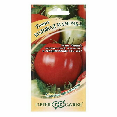 Артикул: 0775-265. , Размер упаковки: 15 x 8 x 0.1 см. Вес: 5 гр. Мякоть имеет насыщенный сладкий вкус и высокое содержание полезных веществ и ликопина. Пикируйте в фазе первого настоящего листа. "Большая мамочка" это ранний детерминантный низкорослый сорт, который предназначен для открытого грунта и плёночных теплиц. , Вид грунта: Универсальный, Тип роста: Детерминантный (среднерослый), Сорт: Большая мамочка, Упаковка: Цветная, Особенности выращивания: Универсальный, Сорт или гибрид: Сорт, Сроки созревания: Сверхранний (скороспелый), Вегетационный период, дни: 90, Агрономический срок годности, лет: 4, Форма томатов: Сердцевидные, Цвет: Красный. Посев: на рассаду с конца февраля по начало марта. Томаты подходят для употребления в свежем виде, приготовления соков, соусов и пасты. Сочные красные сердцевидные плоды весят 220–340 г и созревают уже через 85–95 дней. Перемещайте в теплицы в мае по схеме 40 x 50 см Через несколько дней подвязывайте.