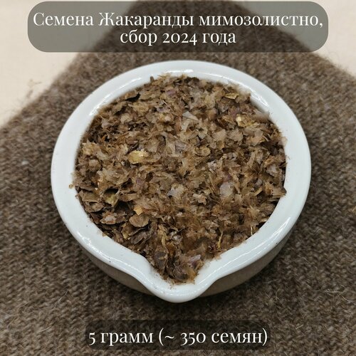 Жакаранда мимозолистная Фиалковое дерево (лат. Кора тонкая, серо-коричневого цвета, гладкая у молодых деревьев, с возрастом покрывается мелкими чешуйками. Jacaranda mimosifolia) 5 грамм (примерно 350 семян) Место сбора: Китай, 2024 год Дерево достигает от 5 до 15 м в высоту. Затем появляются стручки с деревянистой кожурой, около 5 см в диаметре, содержащие большое количество плоских, крылатых семян. В питомниках встречаются экземпляры белого цвета. Цветки до 5 см в длину, сгруппированы в 30-сантиметровые метёлки. Жесткие стручки необычной формы, от 5,1 до 7,6 см в ширину, часто собирают, очищают и используют для украшения рождественских елок и сухих букетов. При благоприятных условиях растёт быстро и может достичь 1 м в высоту. В помещении обычно не цветёт и выращивается ради нежных папоротниковидных листьев. Они появляются весной и в начале лета и цветут до двух месяцев. По мере роста нижние листья опадают. Ветки тонкие, слегка зигзагообразные; светлого красно-коричневого цвета. Единственный вид жакаранды, который выращивается в комнатных условиях. Из-за своих больших папоротниковидных листьев синяя жакаранда культивируется даже в тех областях, где она редко цветёт. Листья достигают до 45 см в длину, перистые, с листовками чуть более 1 см в длину. Некоторым нравится обильное цветение данного растения, другие считают его довольно неопрятным. Рекомендуется выращивать в тёплой солнечной комнате. Хорошо реагирует на некоторое количество прямых солнечных лучей. Зона морозостойкости USDA 9 (?1.1 °C/ ?6.7 °C).