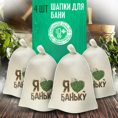 характеристики Шапка для бани и сауны "Я люблю Баньку", банная шапка ”Бацькина баня" 4 шт
