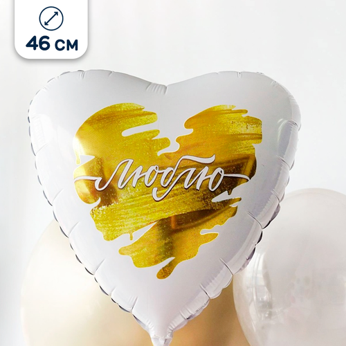 Воздушный фольгированный шар сердце, размером 46 см (в ненадутом виде) белого цвета с изображением золотистых мазков краски и надписи Люблю идеально впишется в праздничный интерьер и поднимет настроение Вашим любимым людям. Шар изготовлен из тонкой фольгированной пленки на основе полиэтилена и имеет встроенный обратный клапан, благодаря которому не сдувается длительное время, а также позволяет использовать его повторно. Фольгированный шар подойдет, юбилей, День Святого Валентина/14 февраля и на различные памятные даты для Ваших родных и близких. Предназначен для надува как гелием, так и воздухом с помощью обычного насоса, либо тонкой трубочки, в этом случае он не будет летать, но его можно прикрепить к стене или поставить на пол. Воздушный шар поставляется в ненадутом виде. Избегайте воздействия прямых солнечных лучей, перепадов температур, повышенной влажности, контакта с водой и механических повреждений.