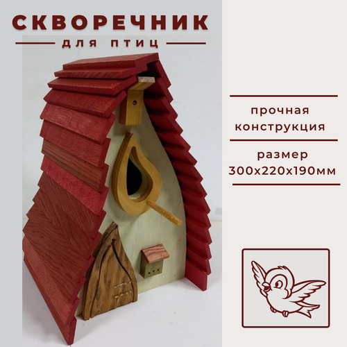 Уникальный сказочный скворечник станет уютным домиком для птиц и прекрасным украшением любого сада. Характеристика: корпус - фанера 15мм, крыша - сосна/ель диаметр летка 37мм герметизация щелей между корпусом и крышей внутренняя лесенка для птенцов крепление на дерево покрытие - итальянское натуральное масло Borma (без запаха).