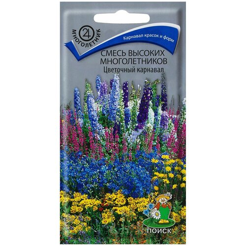 Смесь высоких многолетников Цветочный карнавал состоит из неприхотливых культур высотой от 60 до 120 см. Продолжительность цветения — с июля и до конца лета. Цвет и форма соцветий разнообразные. Сеять можно непосредственно на постоянное место или на рассадную гряду. Особенности выращивания Посев в начале мая. Не требует сложного ухода. Смесь подходит для создания цветочных композиций на клумбах и в цветниках. Для постоянного места подходит солнечный участок или полутень.