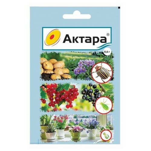 Актара, ВДГ — инсектицид кишечно-контактного действия, предназначен для защиты: картофеля — от проволочника и наземных вредителей; капусты — от капустной мухи; гороха — от тли, зерновки; овощных и цветочных культур закрытого и открытого грунта — от тли, белокрылки, трипсов, щитовок и ложнощитовок; винограда и яблони — от медяниц, цикадок, цветоеда. При внесении в почву обладает выраженной системной активностью. Инсектицид применяют как для опрыскивания растений в период вегетации, так и для внесения в почву. Эффективно подавляет жуков (имаго и личинок), тлю, листоблошек, белокрылок, цикадок, клопов, двукрылых минеров, но слабоэффективен против чешуекрылых вредителей. При почвенном применении за счет системного действия инсектицид одновременно защищает от почвенных и наземных вредителей: сосущих, скрытноживущих и листогрызущих. Применяется двумя способами: опрыскиванием и внесением под корень с поливной водой. Проникнув в организм насекомого, препарат воздействует на никотин-ацетилхолин-рецепторы в нервной системе, вызывая прекращение питания через 15–60 минут, в зависимости от типа вредителя. Период защитного действия — 14–21 день при опрыскивании культуры, 40–60 дней при почвенном внесении.