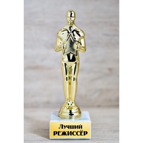 Статуэтка Оскар Лучший режиссер. Ведь всегда найдется повод, чтобы сделать приятное родным и близким, сказать как они дороги нам, выразить свою любовь, благодарность и восхищение. Для самых выдающихся людей теперь можно устроить персональную церемонию вручения «Оскара» в любое время. Цвет: золото. Вставка металлическая с гравировкой: 60х25 мм. Для самых главных в жизни, кому хочется не просто сказать теплые слова, но и отметить их заслуги. А с таким сувениром этот момент запомнится на долгие годы. Основание: мрамор. Материал фигуры: пластик. Главная награда – золотистая статуэтка «Оскар» с гравировкой.