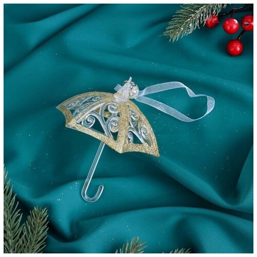 Купить Украшение ёлочное "Зонтик полосы блеск" 10х11,5 см, прозрачно-золотой 6953974 за 311 руб