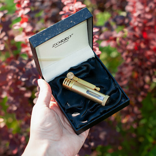 Классическая компактная бензиновая зажигалка. Особенность: наличие окошка в корпусе позволяет контролировать объем заправки. Выполнена в стиле старинной кремниевой зажигалки; одновременно с открытием крышки вращается барабан поджига. Перед использованием, пожалуйста, заправьте топливом. Габариты зажигалки: 7,5*3см Из-за ограничений на условия транспортировки, товар не содержит топлива. Снизу расположена пробка для дозаправки и замены фитиля; Кремень также сменный. Латунный корпус искусственно состарен.