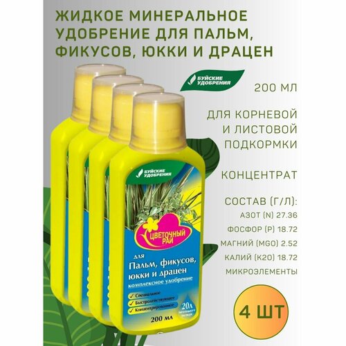 Купить ЖКУ "Цветочный рай" для пальм, фикусов, юкки и драцен, 0,2 л, 4 шт за 509 руб