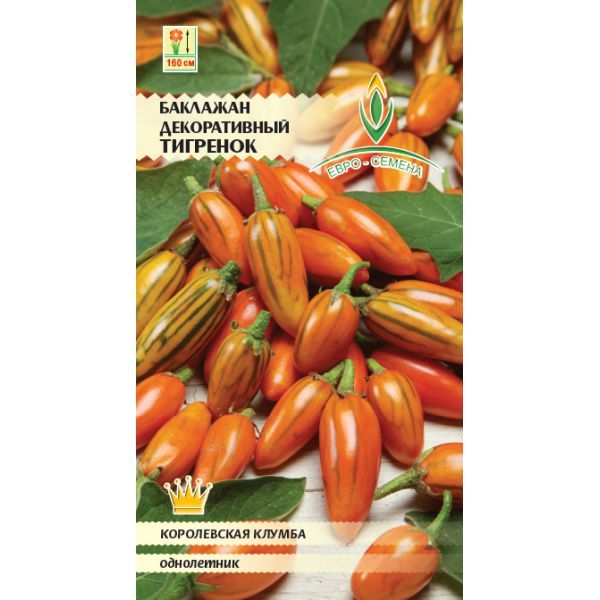 Сорт баклажана «Тигренок» представляет собой уникальное растение, выделяющееся декоративными качествами и высокими вкусовыми характеристиками. Отличается компактным кустом и оригинальной окраской плодов. Плоды цилиндрической формы, массой 0,8-1,1 кг, обладают светло-кремовой, плотной и нежной мякотью с повышенным содержанием витаминов. Скороспелый сорт, преимущественно женского типа цветения, период от всходов до плодоношения составляет 60-65 дней. Имеет великолепные кулинарные качества и отличается способностью к длительному хранению после сбора урожая. Встречаются описания высокорослого варианта сорта с высотой куста 140-180 см, формирующего кисти по 5-8 плодов длиной до 6 см, окрашенных в пестрые цвета от зеленого с темными полосами до других вариаций. Некоторые источники указывают на меньшую массу плодов – менее 300 г. Отмечается отсутствие горечи в мякоти.