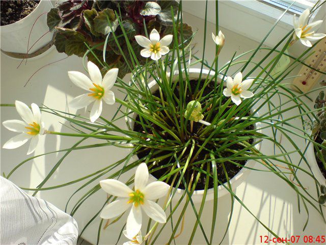 Зимой Зефирантес держат в светлом прохладном (10-12°C) месте, поливают осторожно, во избежание загнивания луковицы.
