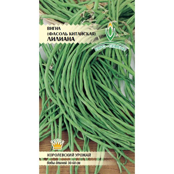 Вигна Лилиана – среднеспелый сорт вьющейся фасоли, период вегетации от всходов до сбора урожая составляет 80-85 дней. Растение характеризуется высокими декоративными качествами, особенно в период цветения, достигая высоты 2,5-3,5 метров и нуждаясь в установке опоры. Отличается уникальными длинными бобами, достигающими 60-85 см в длину и 0,5 см в диаметре. Форма бобов округлая, текстура – сладкая, хрустящая. Плоды Вигны Лилиана обладают высокими вкусовыми качествами, рекомендованы для употребления в свежем виде, консервирования и заморозки. Сорт демонстрирует хорошую урожайность. Вигна Лилиана — отечественный сорт, приспособленный к условиям умеренного климата, но требует защиты от заморозков и достаточного количества солнечного света.