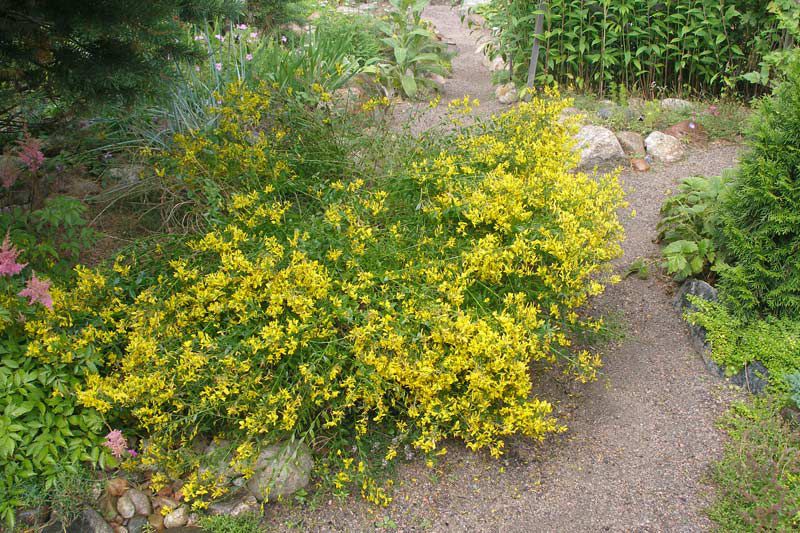 Puutarhan Kukat Dyer N Greenweed, ominaisuudet ja kuvaus