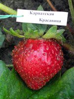 Сорт садовой земляники «Карпатская красавица» характеризуется ранним сроком созревания и ремонтантными свойствами, обеспечивающими плодоношение с конца июня до наступления первых заморозков. Ягоды отличаются крупными размерами (от 20 г), ярко-красной блестящей кожицей и нежной, сочной мякотью. Вкус ягод описывается как кисло-сладкий, десертный. Форма ягод – сердцевидная. Сорт ценится за неприхотливость в уходе и высокую урожайность. Отмечается прочная и эластичная кожица ягод, что способствует хорошей транспортабельности. Некоторые источники указывают на неремонтантный характер сорта, требуя уточнения данной информации в дополнительных источниках. Внешний вид ягод привлекателен, что делает сорт перспективным для коммерческого выращивания. Более подробные сведения о технологии выращивания и сравнении с аналогами требуют дополнительных исследований.