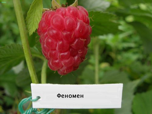 Сорт малины Феномен‚ полученный украинскими селекционерами путем скрещивания сортов Столичная и Одарка в 1991 году‚ характеризуется средним сроком созревания. Кусты полураскидистые‚ высотой от 2‚5 до 2‚7 метров‚ с умеренной шиповатостью побегов. Молодые побеги имеют зеленовато-фиолетовый оттенок‚ который к осени сменяется на светло-коричневый‚ а затем желтоватый. Ягоды крупные‚ конической формы (в первый год – округлой)‚ массой 4‚5-5 г‚ достигая иногда 8-10 г. Костянки крупные‚ не очень плотно сцеплены между собой. Кожица матовая‚ ярко-красная‚ мякоть сочная‚ плотная‚ с приятным сладко-кислым вкусом и насыщенным ароматом. Соотношение сахаров и кислот составляет приблизительно 6‚5.2 на 100 г. Сорт отличается хорошей засухо- и морозоустойчивостью.