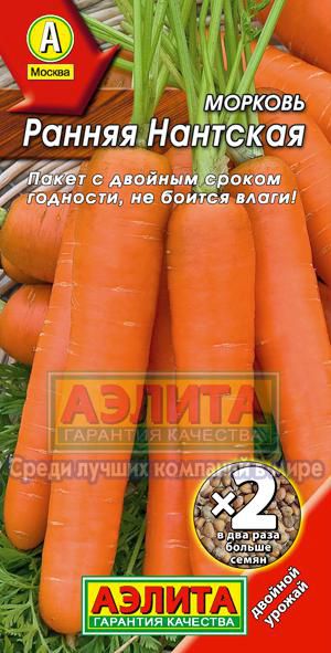 Сорт моркови Ранняя Нантская характеризуется ранним созреванием и высокой урожайностью. Корнеплоды цилиндрической формы, тупоконечные, с гладкой поверхностью. Окраска ярко-оранжевая, насыщенная. Отличается отменными вкусовыми качествами и сочным мясистым корнеплодом. Предназначен для употребления в свежем виде, приготовления соков и консервирования. Семена высеваются в открытый грунт. Растение неприхотливо, но требует достаточного количества солнечного света.