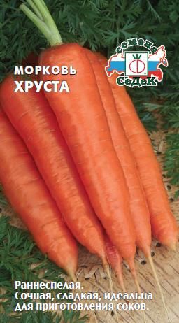 Сорт моркови 'Хрусталь' характеризуется высокой товарностью корнеплодов и отличными вкусовыми качествами. Корнеплоды цилиндрической формы, ровные, с гладкой поверхностью, отличаются ярким оранжевым цветом и отсутствием сердцевины. Длина корнеплода достигает 18-20 см, а диаметр – 3-4 см. 'Хрусталь' демонстрирует хорошую лежкость, сохраняя свои вкусовые и товарные качества в течение длительного периода хранения. Растение среднерослое, с хорошо развитой листовой массой, обеспечивающей оптимальные условия для формирования корнеплодов. Сорт отличаеться устойчивостью к расщеплению и повреждению вредителями. Рекомендуется для выращивания в различных климатических условиях.