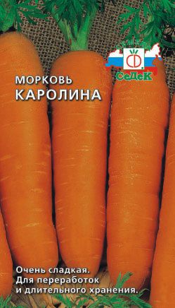 Сорт моркови Каролина характеризуется поздним сроком созревания (140-150 дней от всходов до технической спелости). Корнеплоды обладают выровненной цилиндрической формой с незначительным заострением на конце. Окраска корнеплодов интенсивно-оранжевая, длина составляет 17-18 см, а масса – 65-75 г. Сердцевина небольшая, темно-оранжевого цвета. Отмечаются отличные вкусовые качества. Урожайность сорта достаточно высока и достигает 8-9 кг/м.. Важной особенностью сорта Каролина является устойчивость к цветушности, что обеспечивает высокую товарность корнеплодов и пригодность для длительного хранения. Рекомендуется для употребления в свежем виде и использования в перерабатывающей промышленности.
