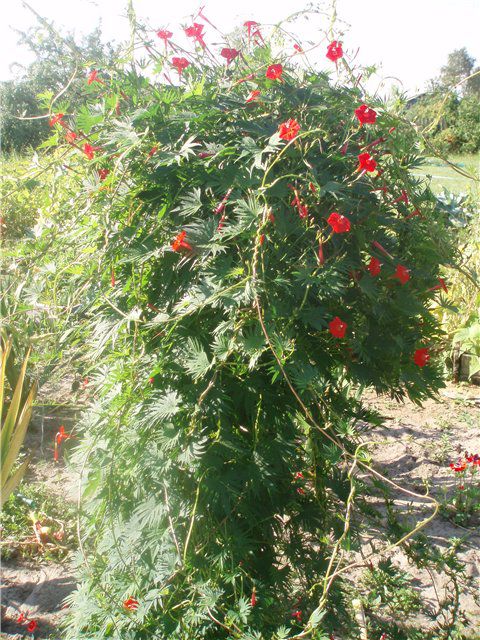 Tuin Bloemen Kardinaal Klimmer, Cipres Wijnstok, Indian Pink, karakteristieken en beschrijving