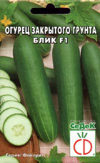 Гибрид огурца Блик F1 представляет собой среднеранний партенокарпический сорт женского типа цветения. Период от всходов до плодоношения составляет 55-57 дней. Растение характеризуется мощным, компактным и хорошо облиственным кустом. Формирование завязей букетное, по 2-4 зеленца в узле. Плоды цилиндрической формы, гладкие, темно-зеленого цвета с белыми шипами, длиной 12-14 см и массой 90-100 г. Отличается высокой урожайностью (24,5-25,6 кг/кв.м) и отсутствием горечи. Зеленцы характеризуются высокой товарностью, прекрасно подходят для употребления в свежем виде, а также для консервирования и засолки. Гибрид демонстрирует устойчивость к таким распространенным заболеваниям, как настоящая и ложная мучнистая роса, аскохитоз. Рекомендуется для выращивания в пленочных теплицах и открытом грунте, а также подходит для культивации на балконах и подоконниках благодаря теневыносливости.